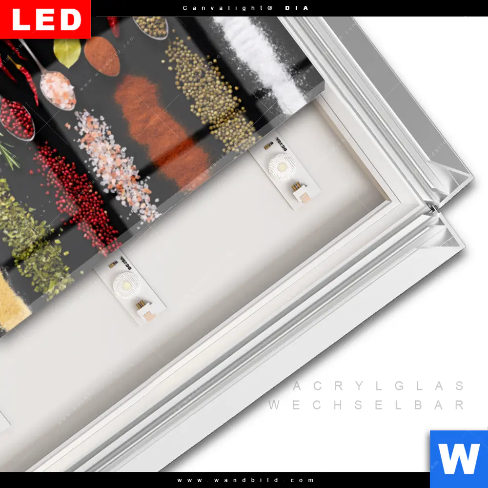 LED-Glasbild mit austauschbarem Acrylglas-Druck (Wechselbild)