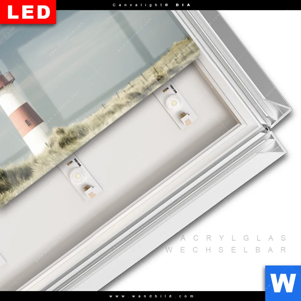 LED-Glasbild mit austauschbarem Acrylglas-Druck (Wechselbild)