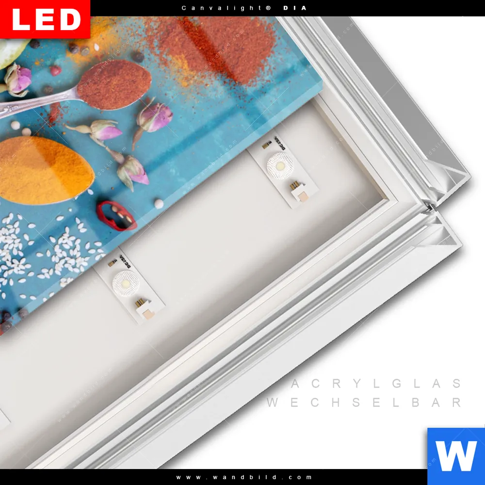 LED-Glasbild mit austauschbarem Acrylglas-Druck (Wechselbild)
