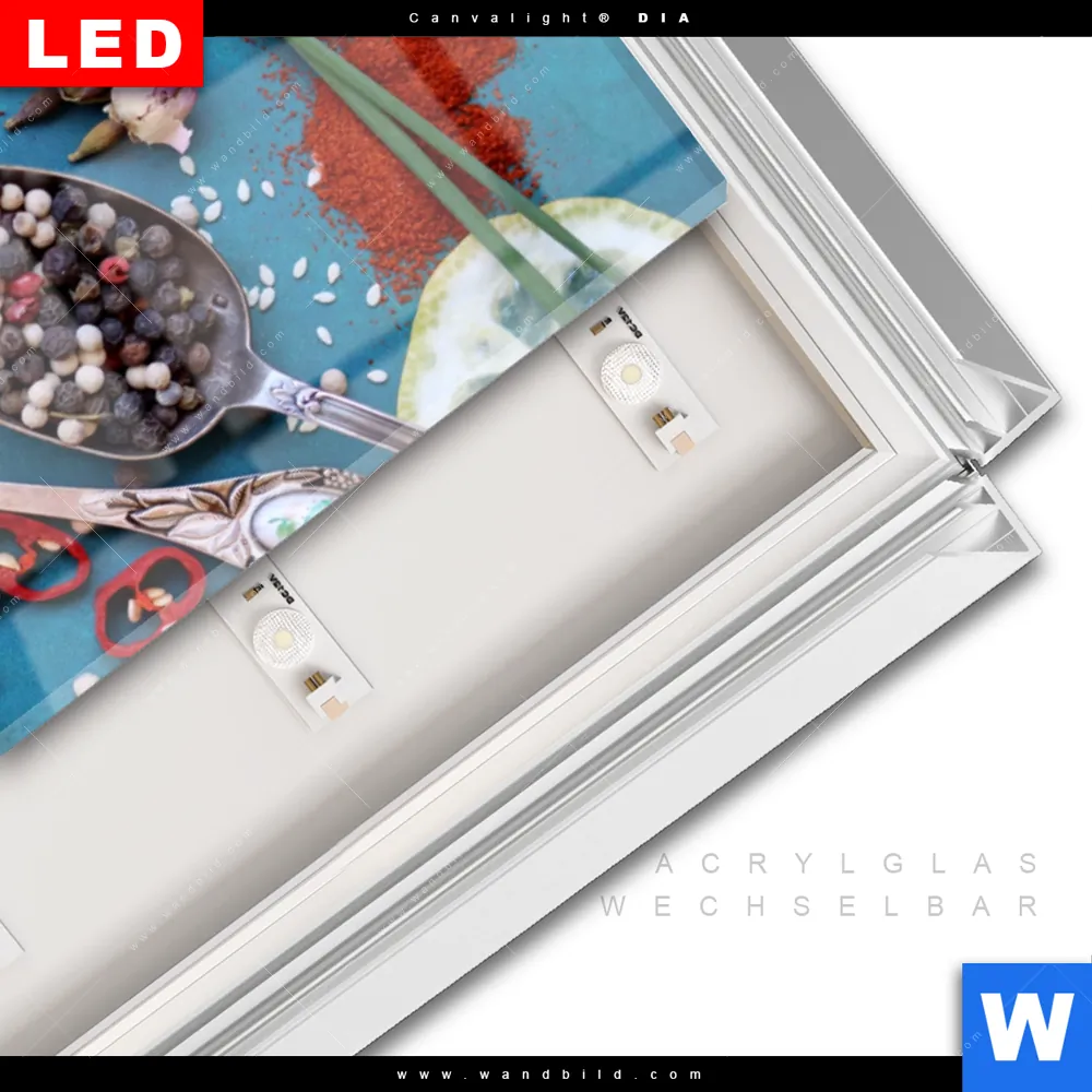 LED-Glasbild mit austauschbarem Acrylglas-Druck (Wechselbild)