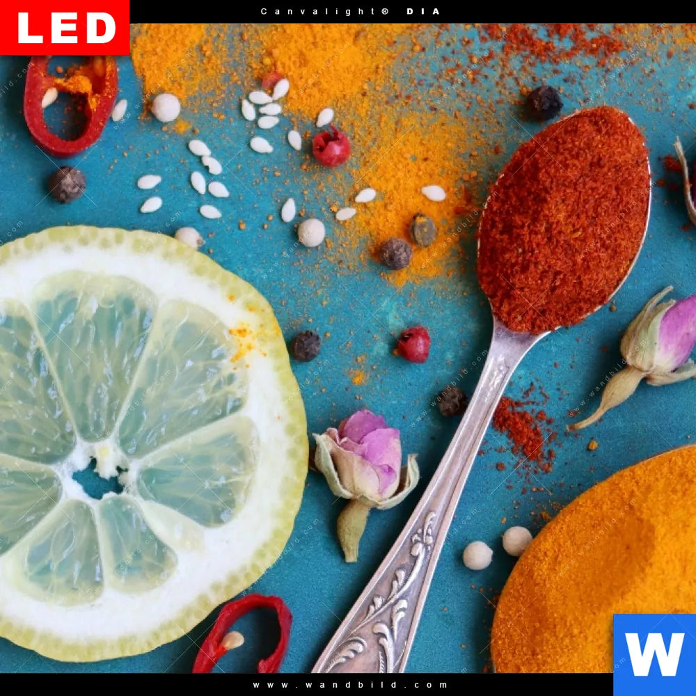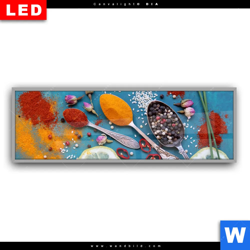 Canvalight® DIA Leuchtbild | Vintage Silberlöffel mit Gewürzen | Panorama