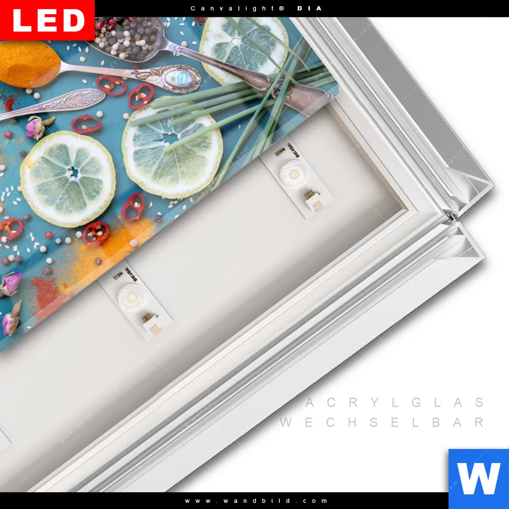LED-Glasbild mit austauschbarem Acrylglas-Druck (Wechselbild)