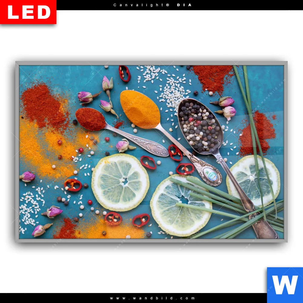 Canvalight® DIA Leuchtbild | Vintage Silberlöffel mit Gewürzen | Querformat