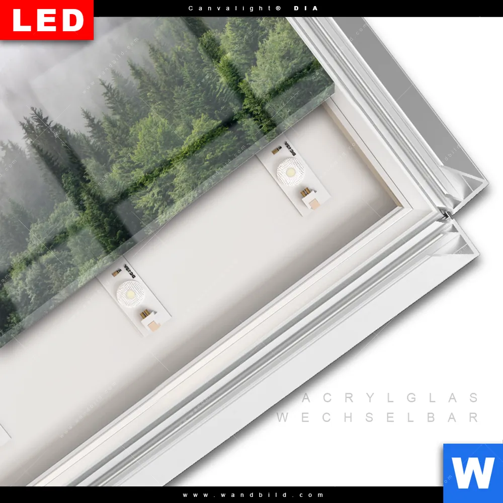 LED-Glasbild mit austauschbarem Acrylglas-Druck (Wechselbild)
