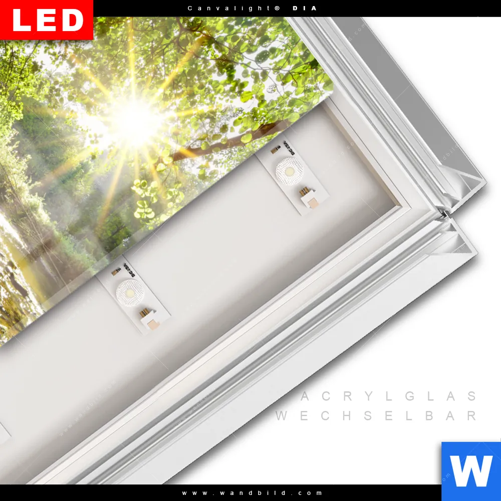LED-Glasbild mit austauschbarem Acrylglas-Druck (Wechselbild)