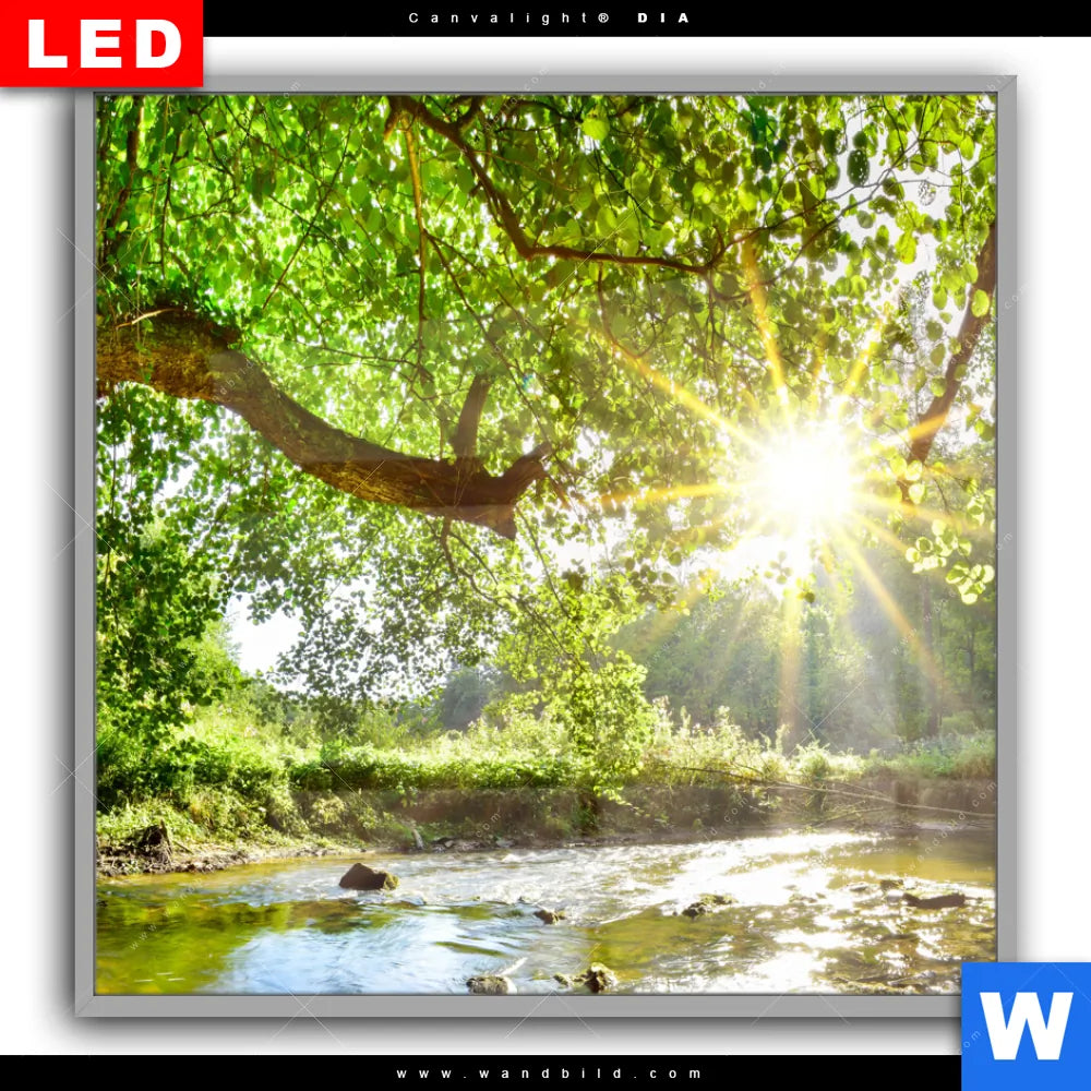 Canvalight® DIA Leuchtbild | Wald mit Bach bei Sonnenschein | Quadrat