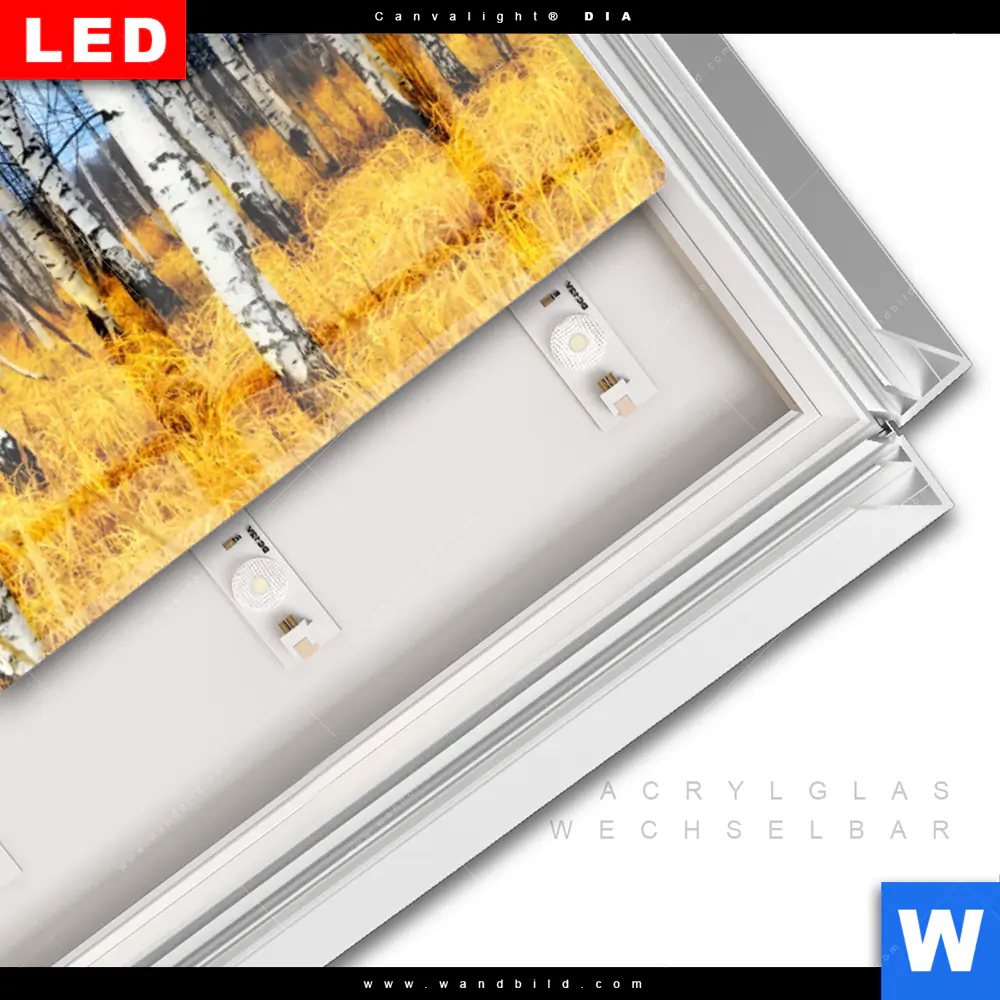 LED-Glasbild mit austauschbarem Acrylglas-Druck (Wechselbild)
