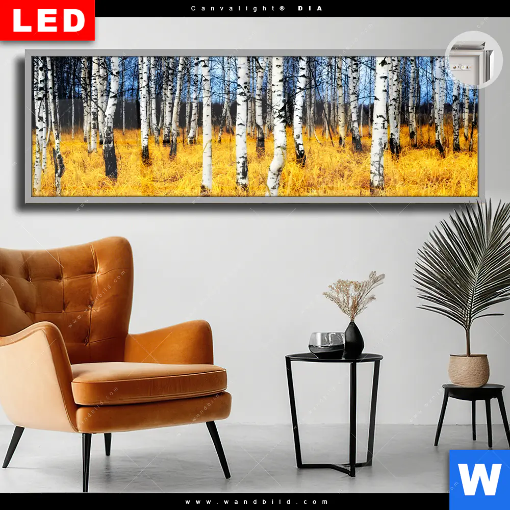 Canvalight® DIA Leuchtbild | Wald mit Birkenbäumen | Panorama