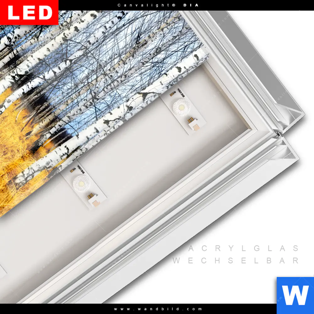 LED-Glasbild mit austauschbarem Acrylglas-Druck (Wechselbild)