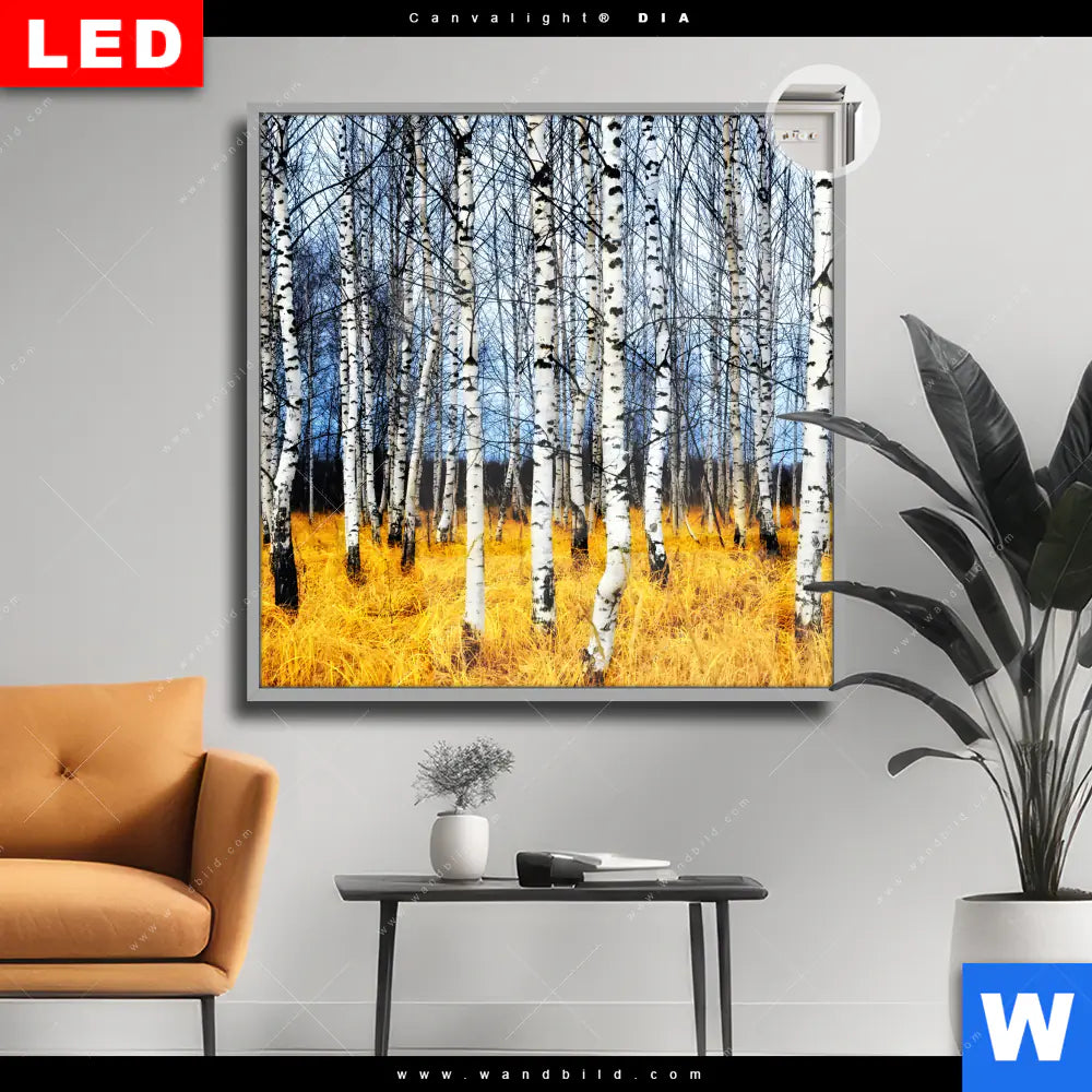 Canvalight® DIA Leuchtbild | Wald mit Birkenbäumen | Quadrat