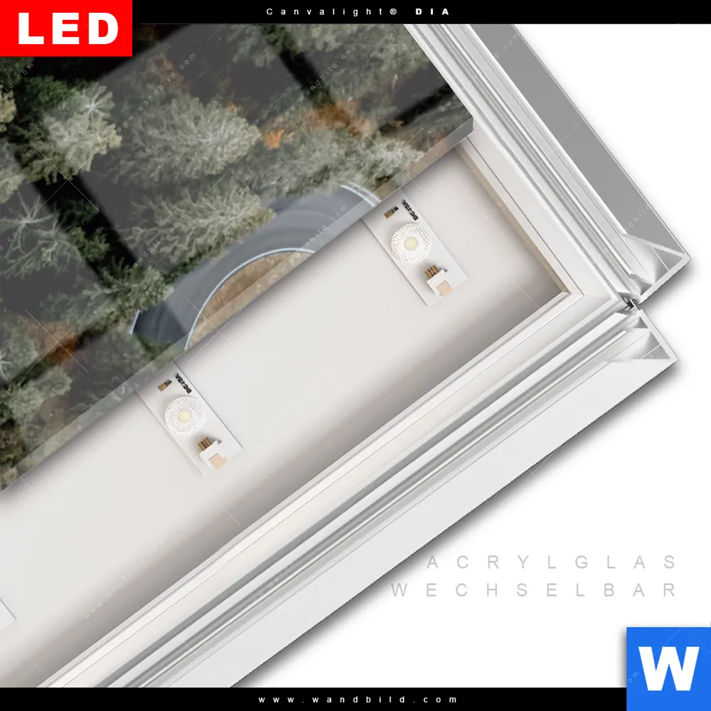 LED-Glasbild mit austauschbarem Acrylglas-Druck (Wechselbild)