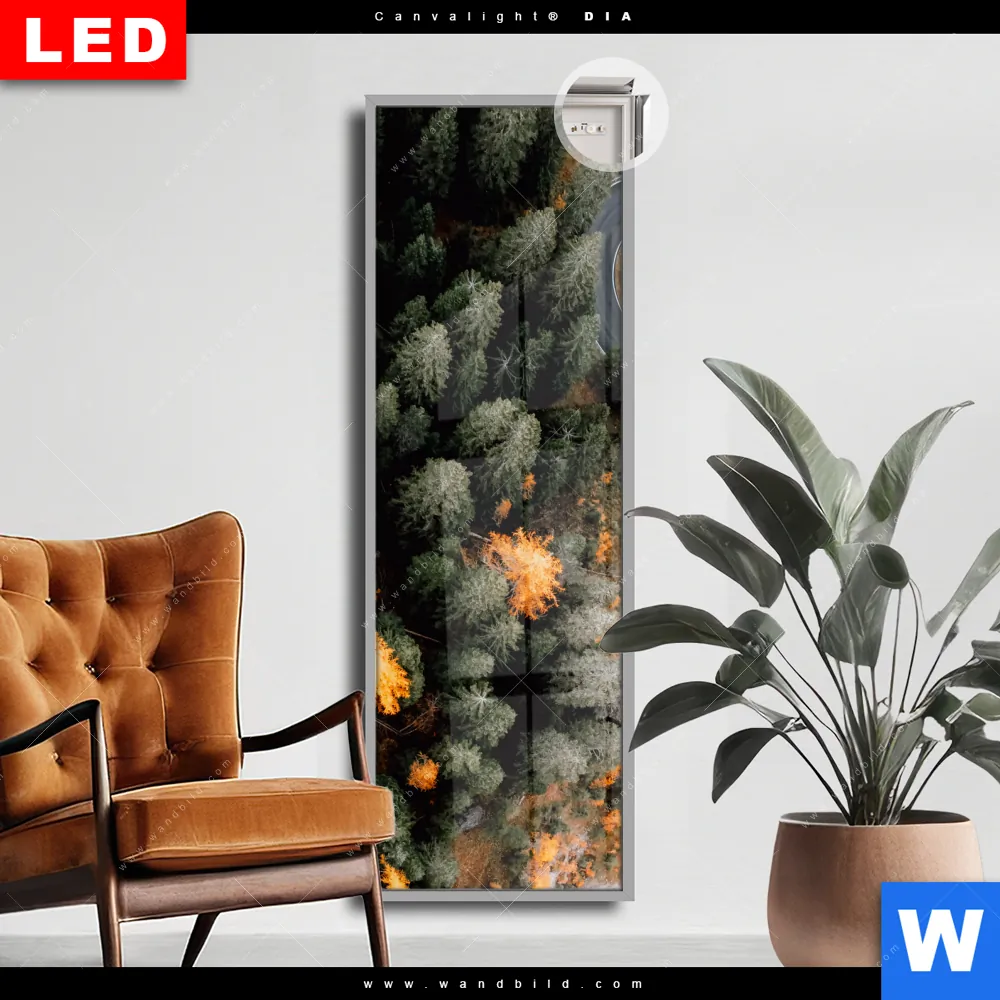 Canvalight® DIA Leuchtbild | Wald & Straße von oben | Schmal