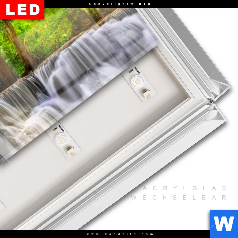 LED-Glasbild mit austauschbarem Acrylglas-Druck (Wechselbild)