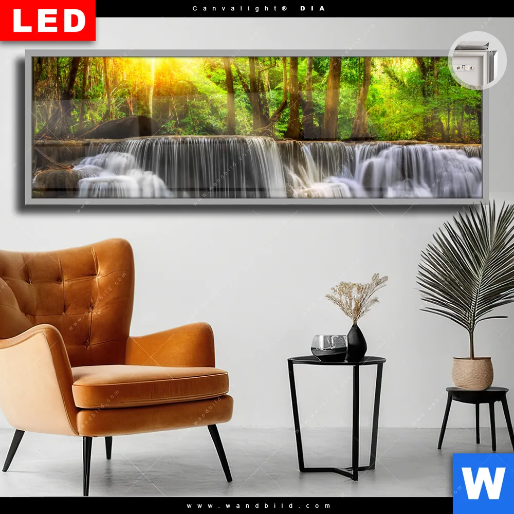 Canvalight® DIA Leuchtbild | Wald & Wasserfall No. 2 | Panorama