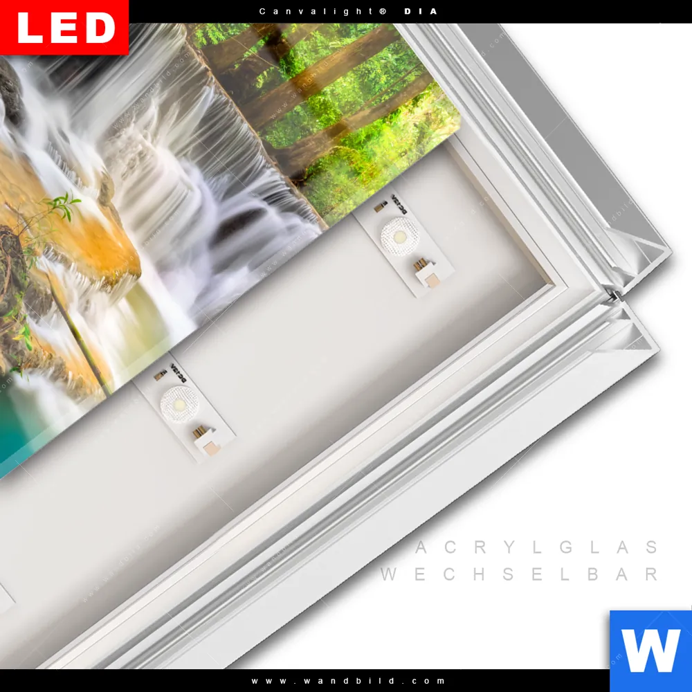 LED-Glasbild mit austauschbarem Acrylglas-Druck (Wechselbild)