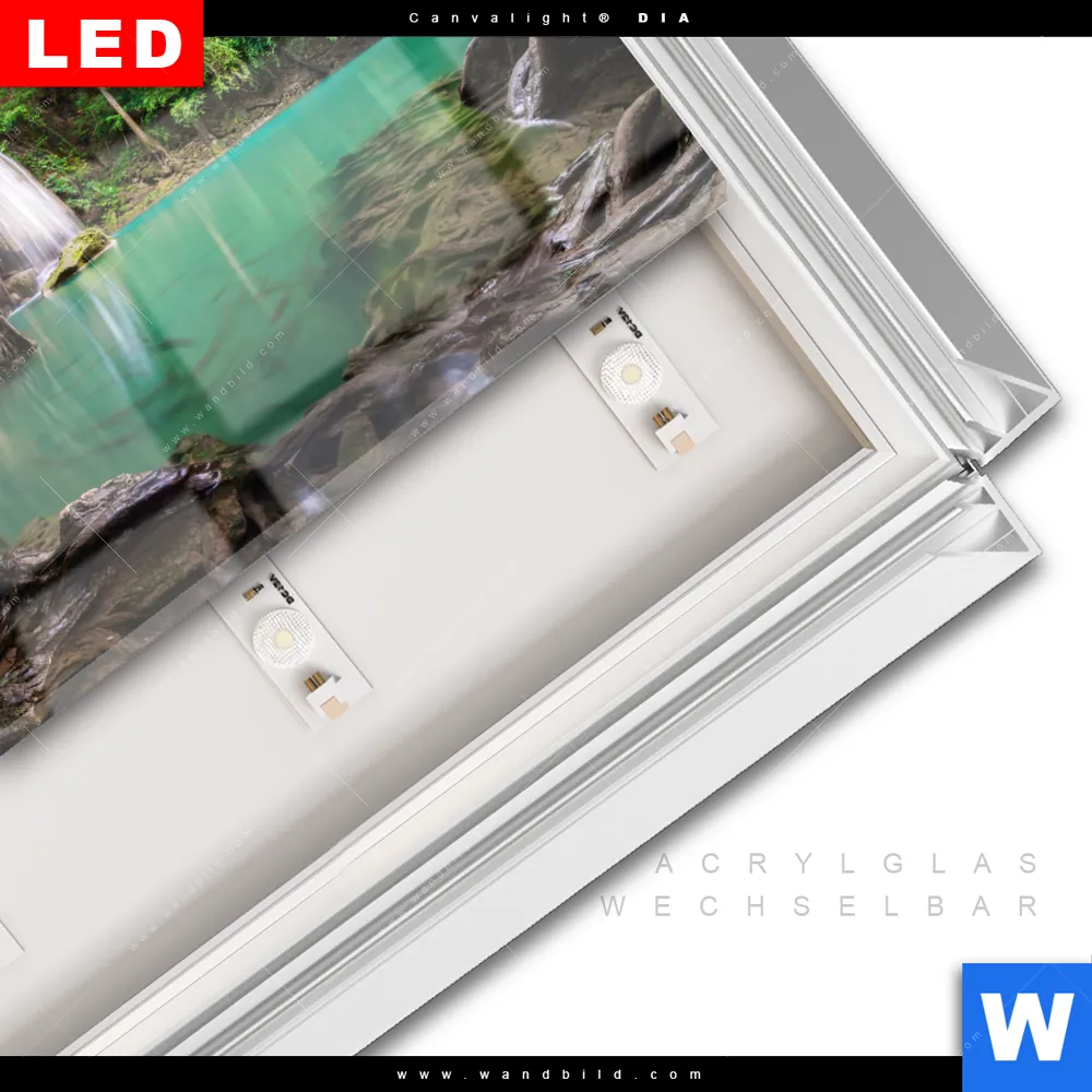 LED-Glasbild mit austauschbarem Acrylglas-Druck (Wechselbild)