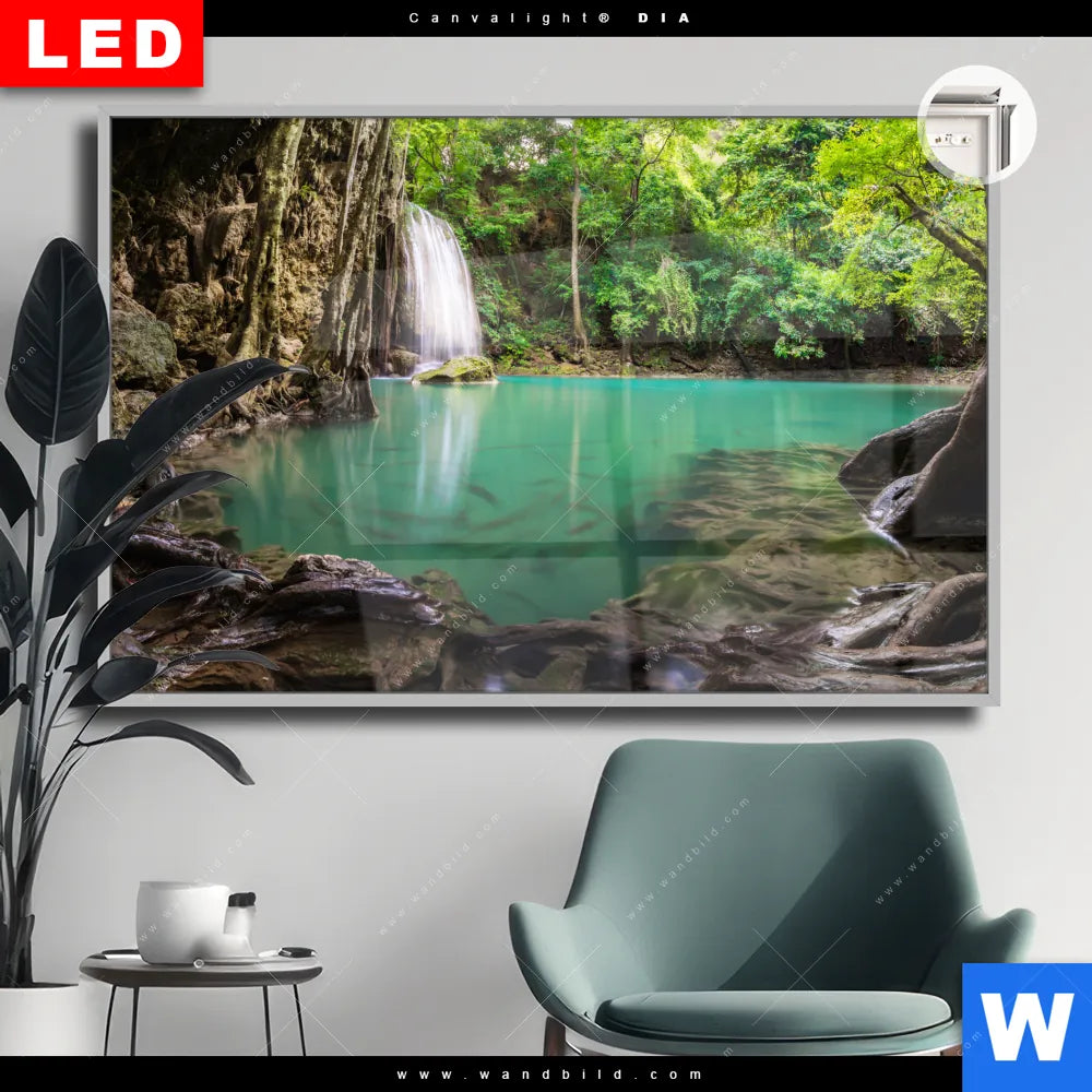 Canvalight® DIA Leuchtbild | Wald & Wasserfall No. 4 | Querformat