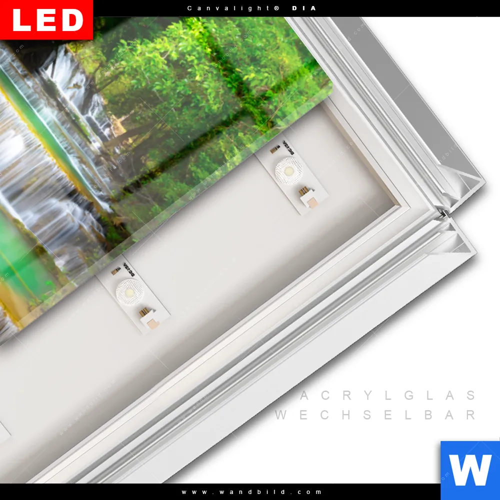 LED-Glasbild mit austauschbarem Acrylglas-Druck (Wechselbild)