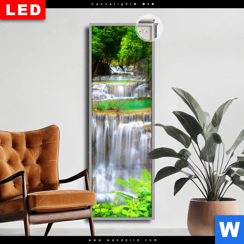Canvalight® DIA Leuchtbild | Wald & Wasserfall No. 6 | Schmal