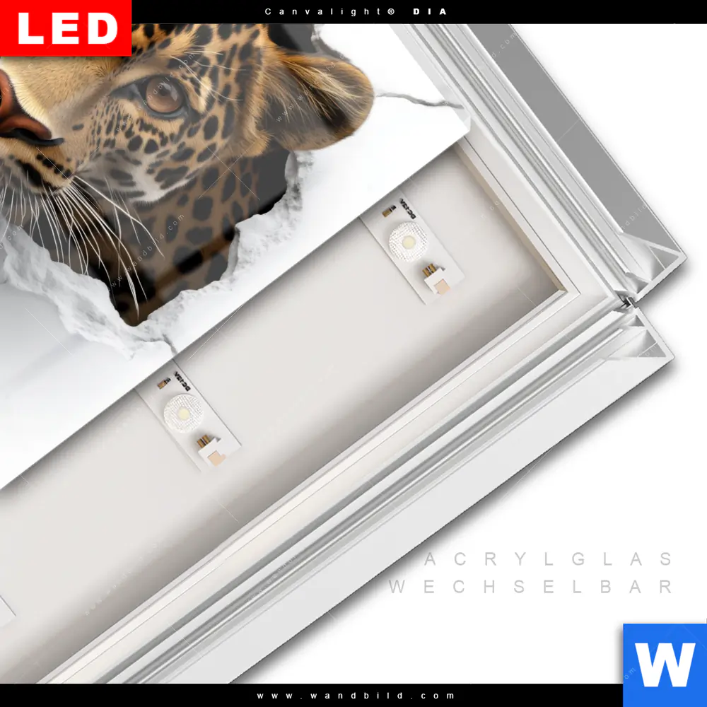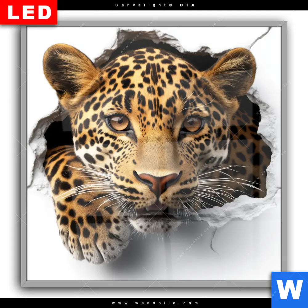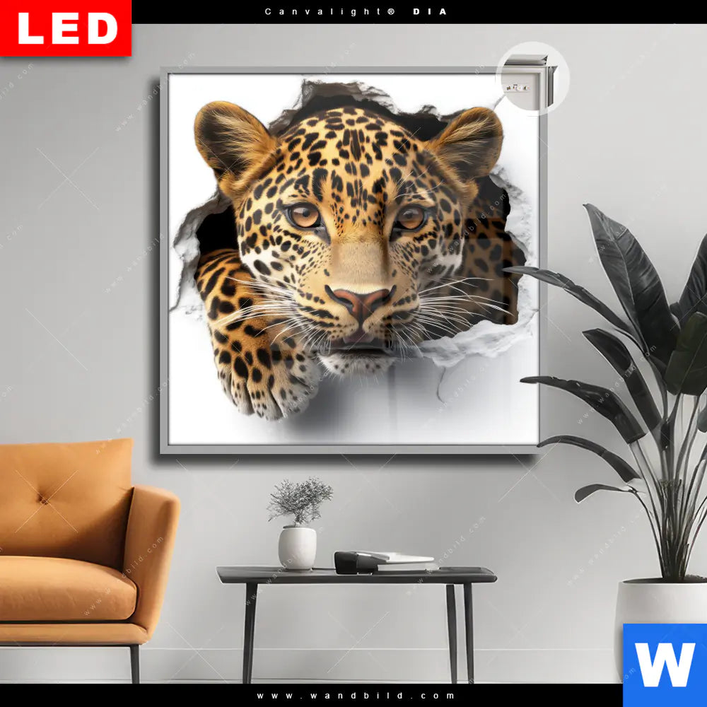 Canvalight® DIA Leuchtbild | Wanddurchbruch - Leopard | Quadrat
