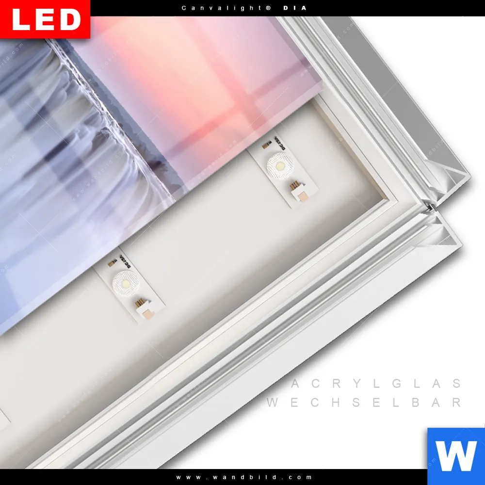 LED-Glasbild mit austauschbarem Acrylglas-Druck (Wechselbild)