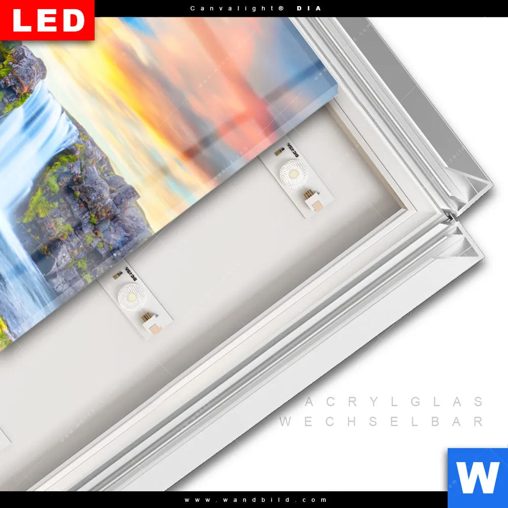 LED-Glasbild mit austauschbarem Acrylglas-Druck (Wechselbild)