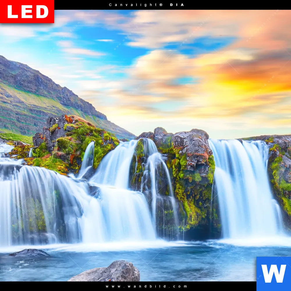 Canvalight® DIA Leuchtbild | Wasserfall bei Sonnenuntergang | Hochformat