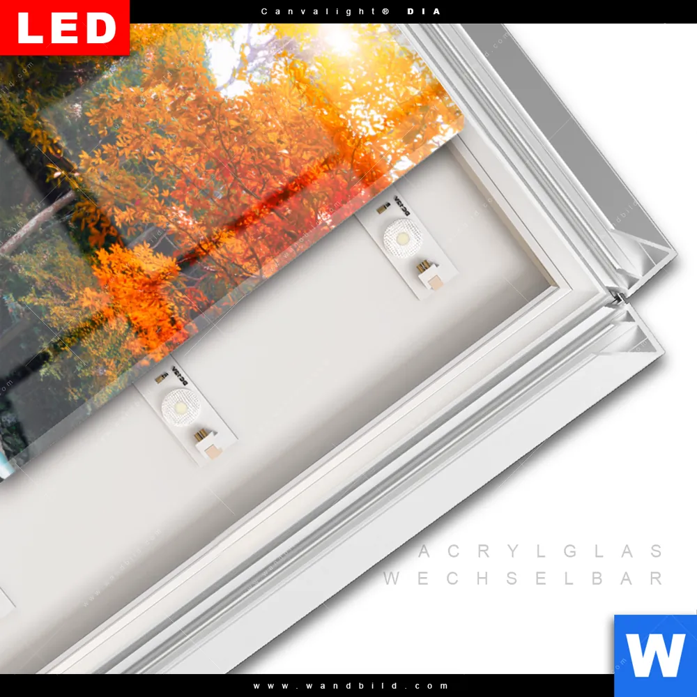 LED-Glasbild mit austauschbarem Acrylglas-Druck (Wechselbild)