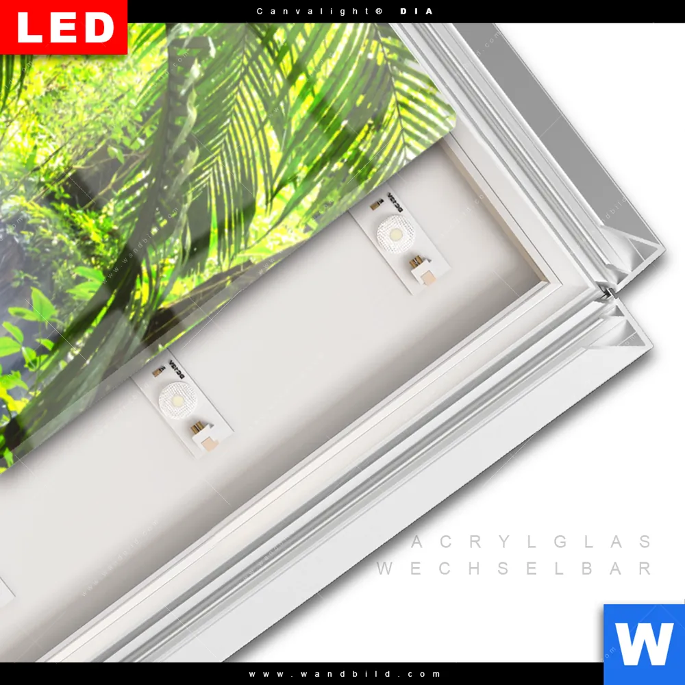 LED-Glasbild mit austauschbarem Acrylglas-Druck (Wechselbild)