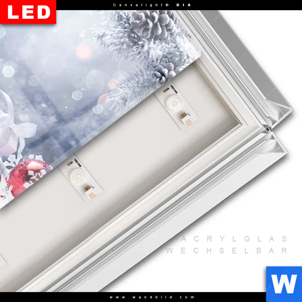LED-Glasbild mit austauschbarem Acrylglas-Druck (Wechselbild)