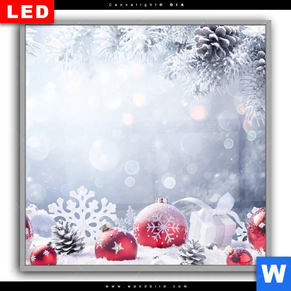 Canvalight® DIA Leuchtbild | Weihnachtskugeln im Winterwunderland | Quadrat
