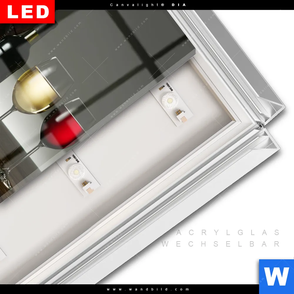 LED-Glasbild mit austauschbarem Acrylglas-Druck (Wechselbild)