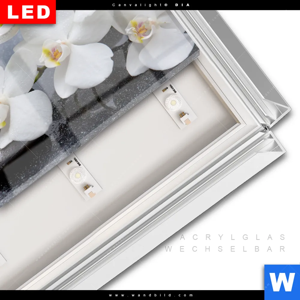 Canvalight® DIA Leuchtbild | Weiße Orchideen | Querformat