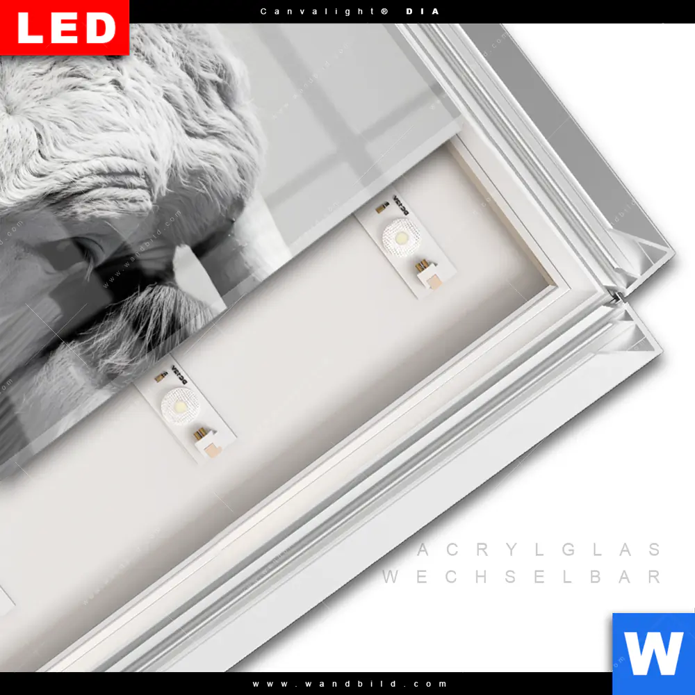 LED-Glasbild mit austauschbarem Acrylglas-Druck (Wechselbild)