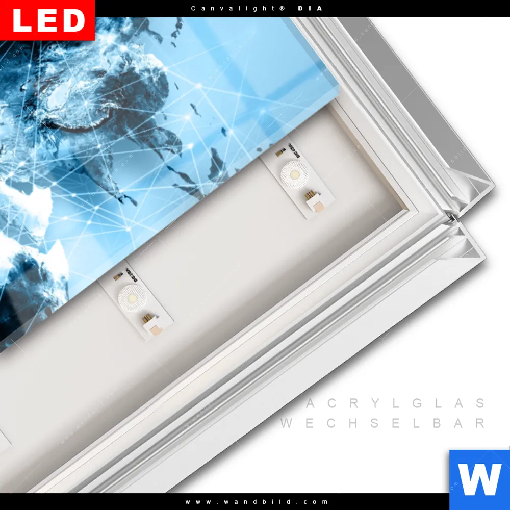 LED-Glasbild mit austauschbarem Acrylglas-Druck (Wechselbild)