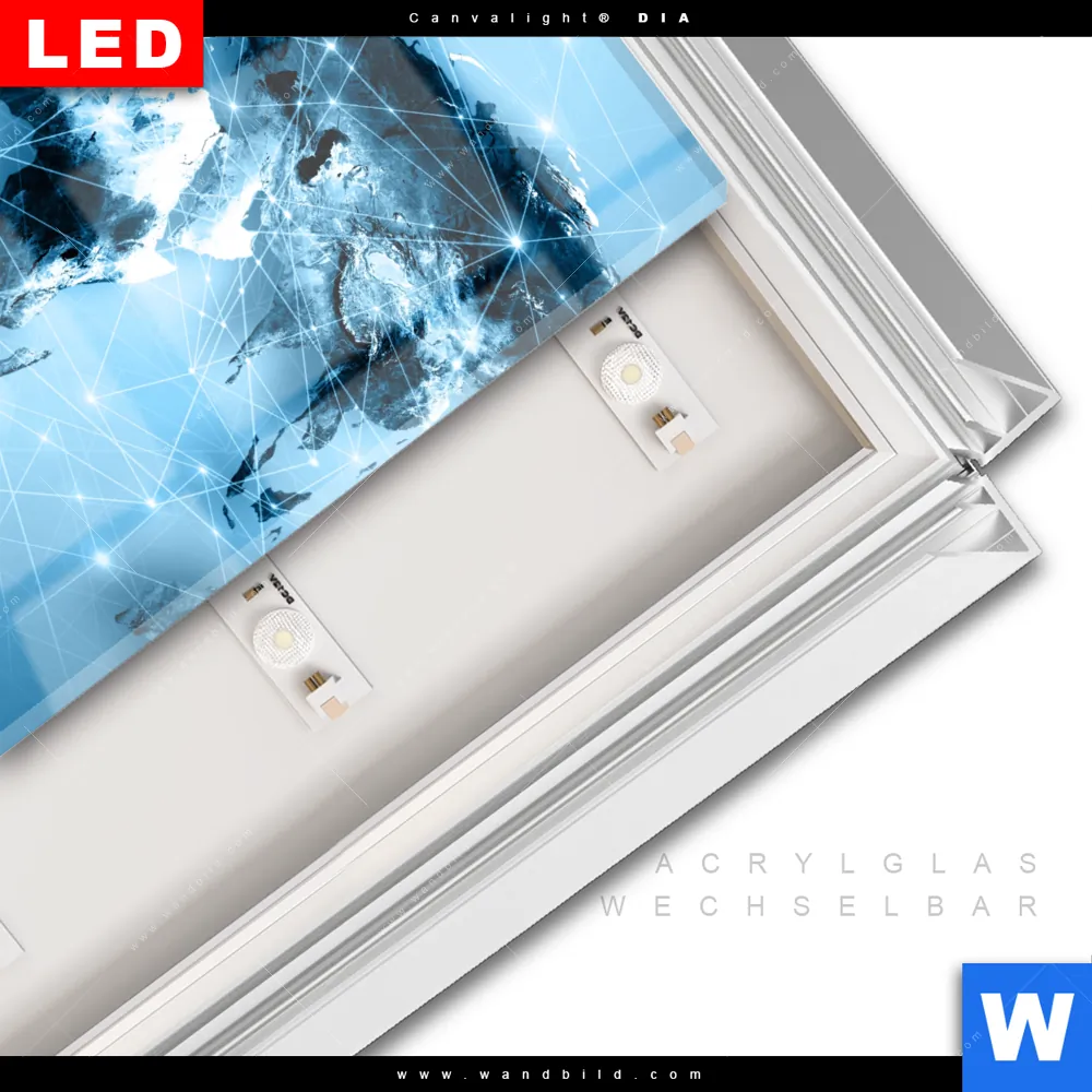 LED-Glasbild mit austauschbarem Acrylglas-Druck (Wechselbild)
