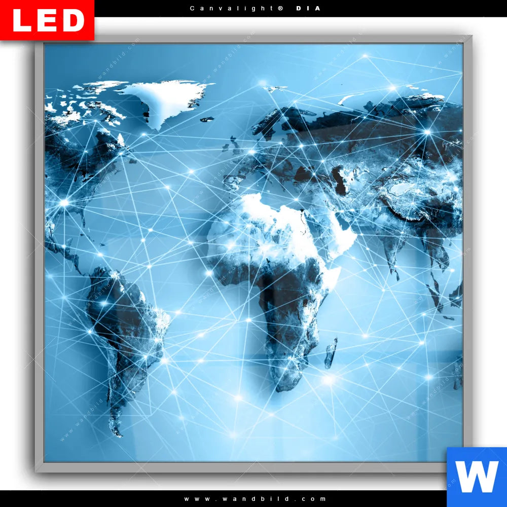 Canvalight® DIA Leuchtbild | Weltkarte Kommunikation | Quadrat