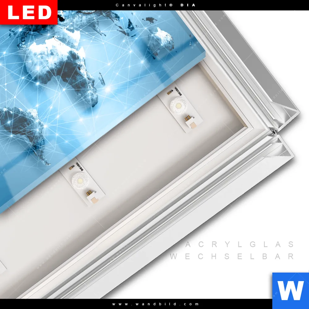 LED-Glasbild mit austauschbarem Acrylglas-Druck (Wechselbild)