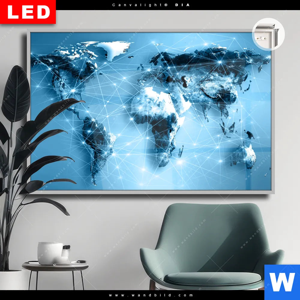 Canvalight® DIA Leuchtbild | Weltkarte Kommunikation | Querformat