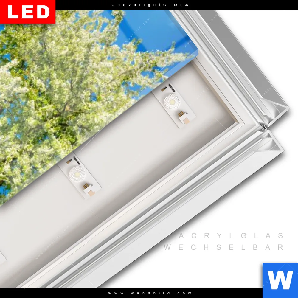 LED-Glasbild mit austauschbarem Acrylglas-Druck (Wechselbild)