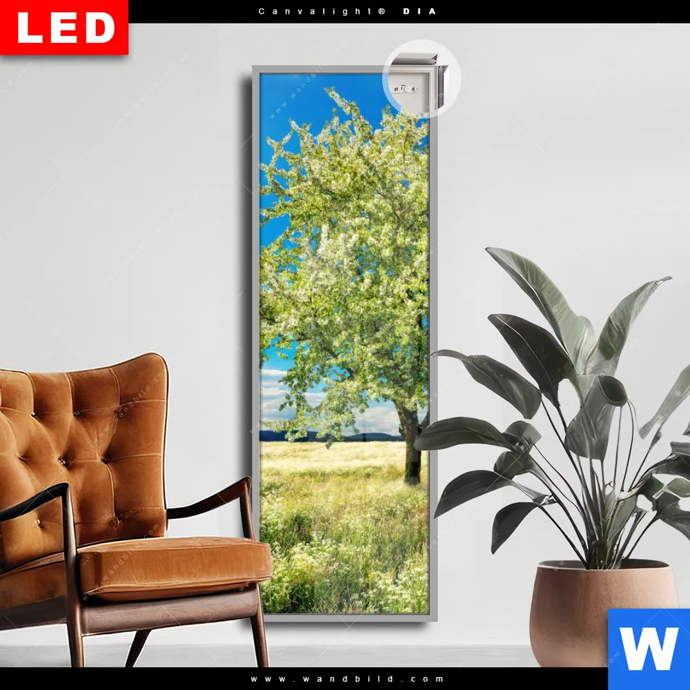 Canvalight® DIA Leuchtbild | Wiese mit blühendem Baum | Schmal