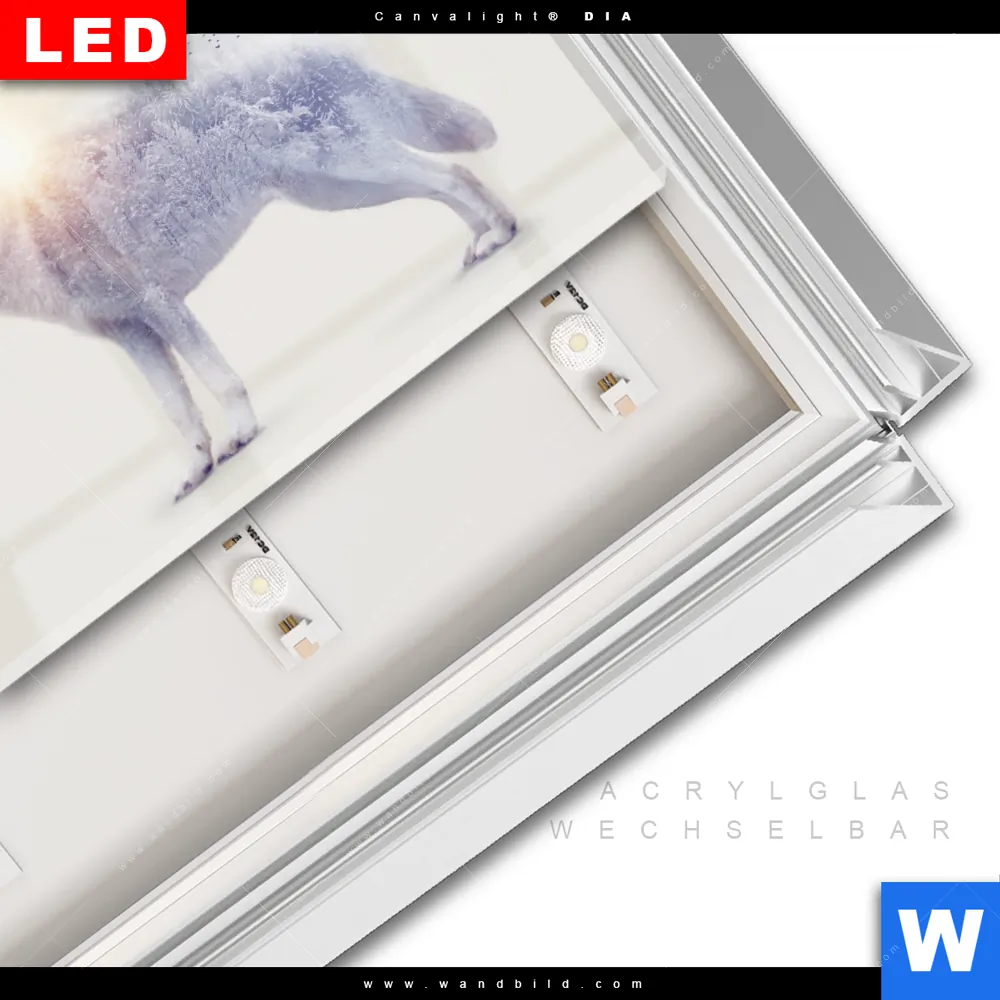 LED-Glasbild mit austauschbarem Acrylglas-Druck (Wechselbild)