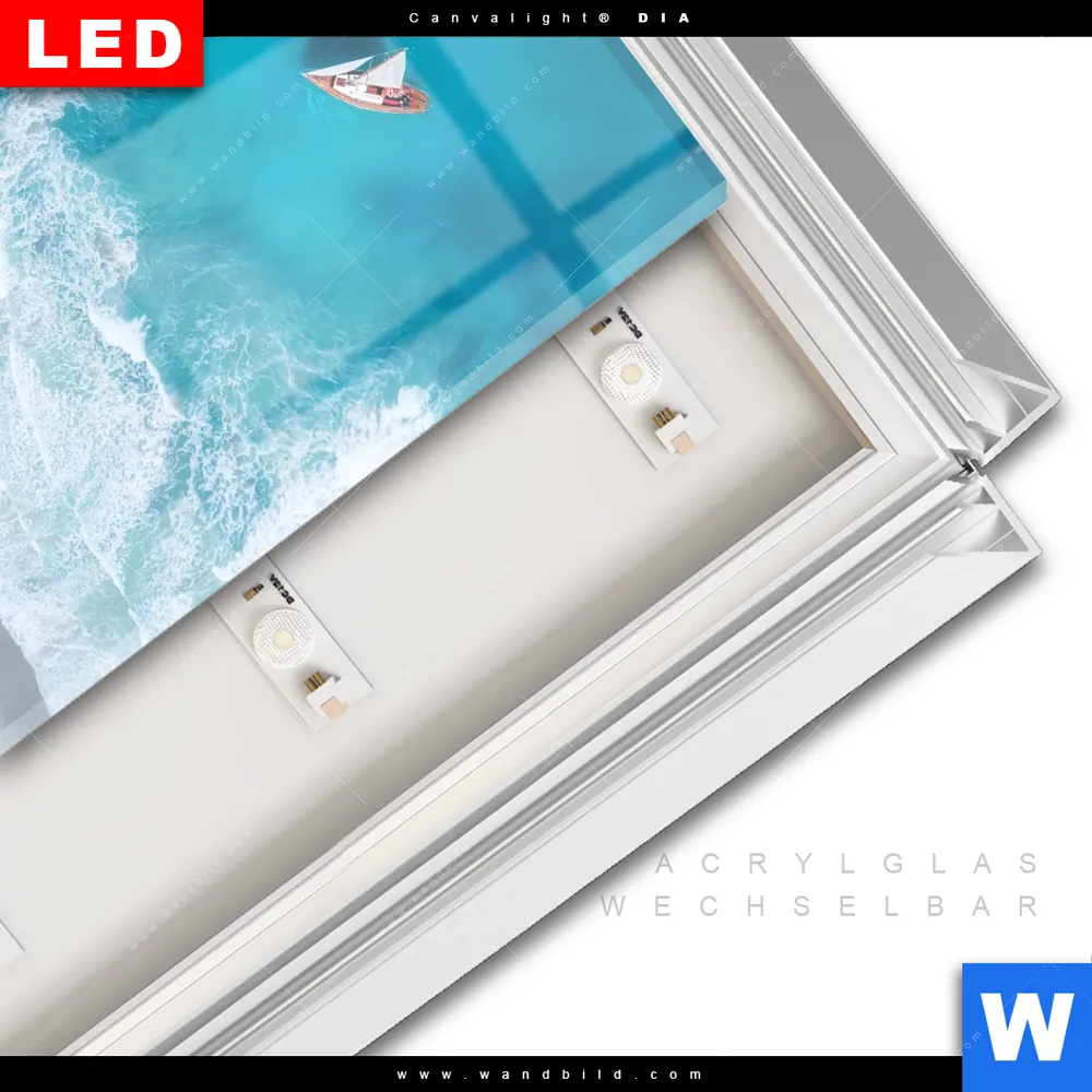 LED-Glasbild mit austauschbarem Acrylglas-Druck (Wechselbild)