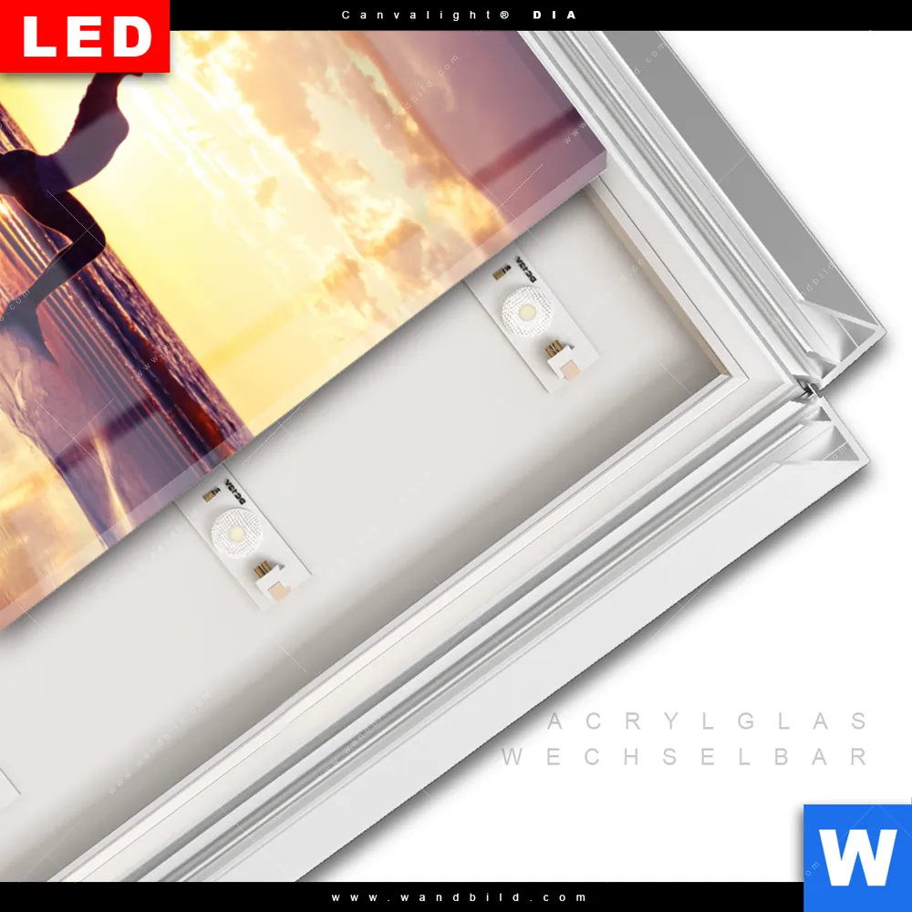 LED-Glasbild mit austauschbarem Acrylglas-Druck (Wechselbild)