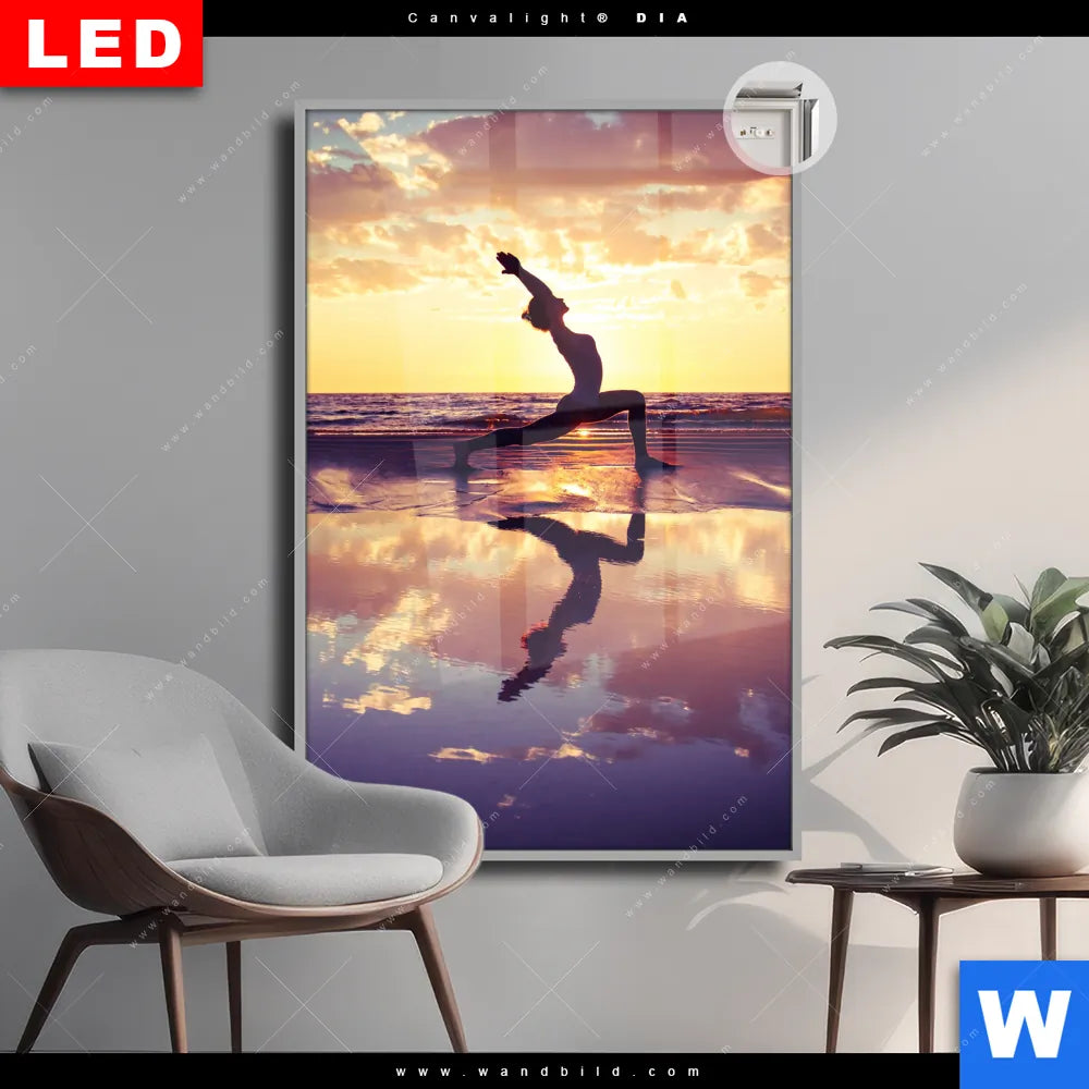 Canvalight® DIA Leuchtbild | Yoga am lila Strand | Hochformat