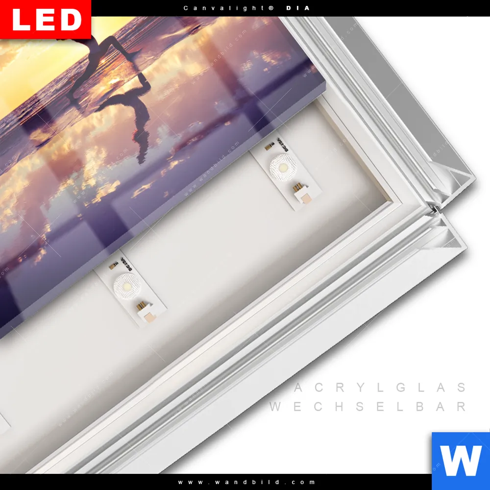 LED-Glasbild mit austauschbarem Acrylglas-Druck (Wechselbild)