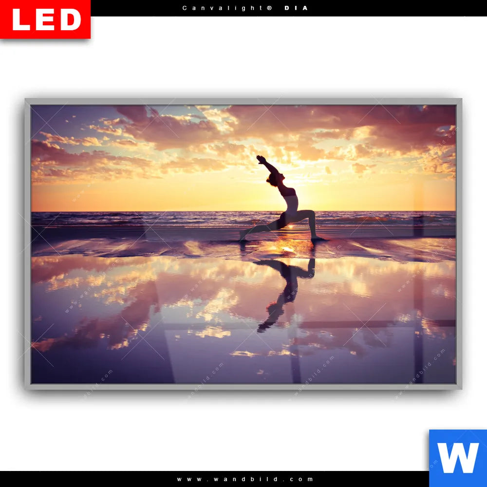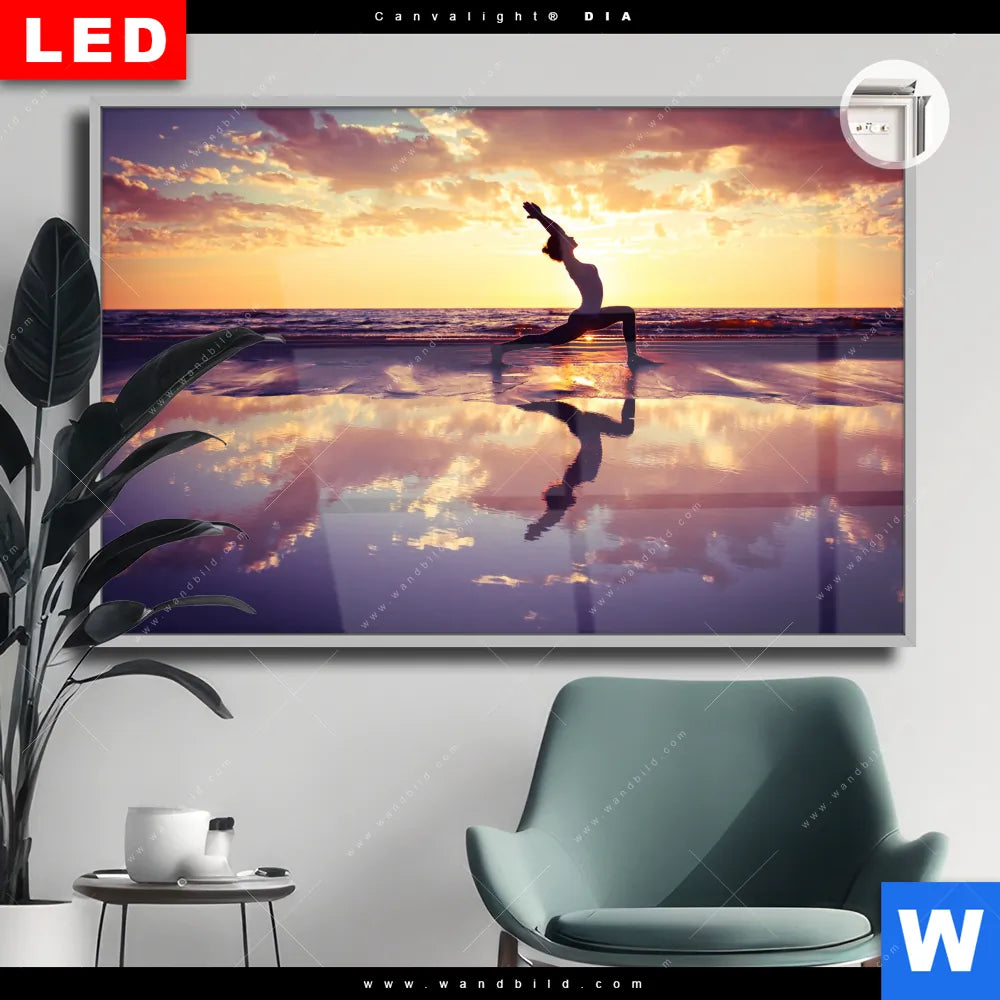 Canvalight® DIA Leuchtbild | Yoga am lila Strand | Querformat