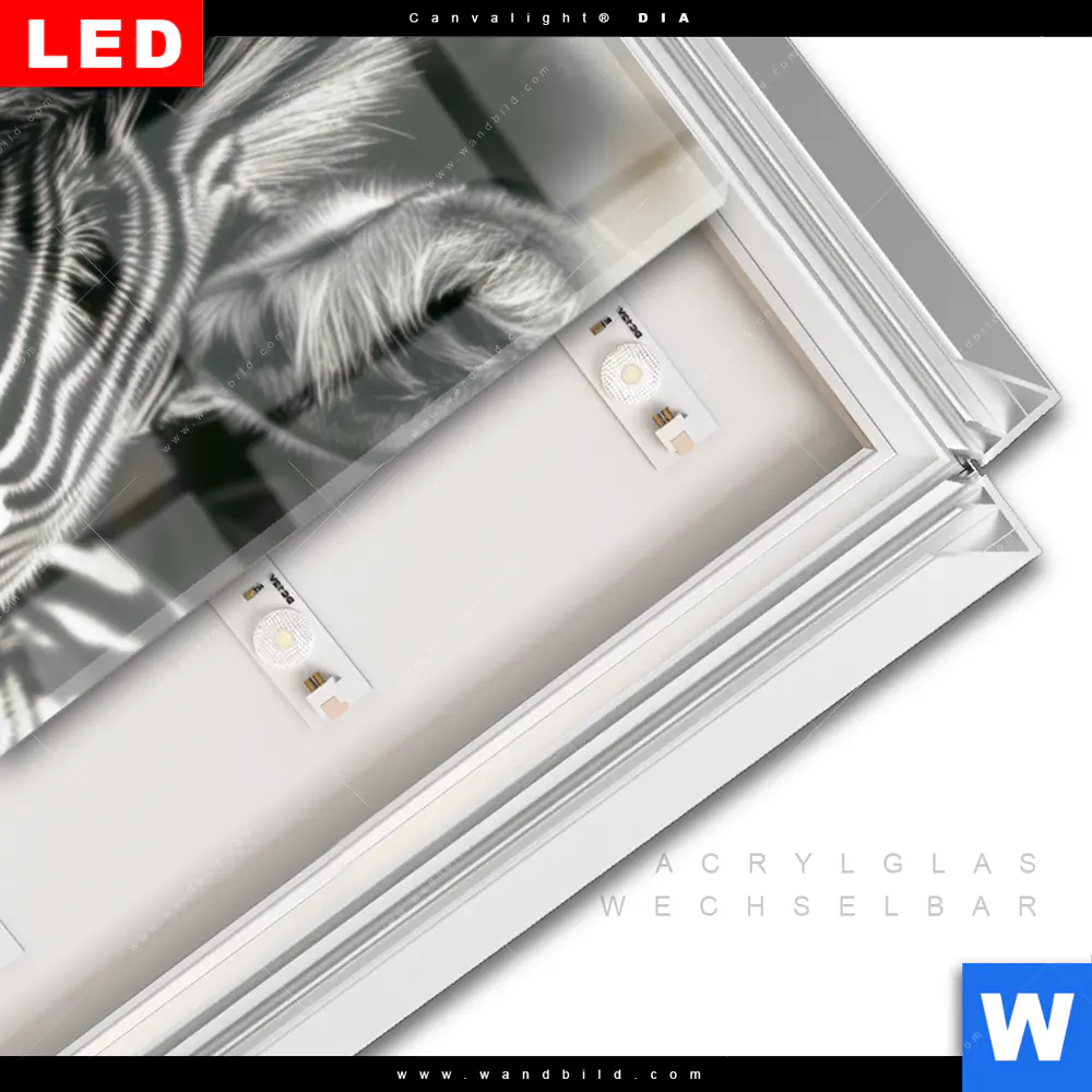 LED-Glasbild mit austauschbarem Acrylglas-Druck (Wechselbild)