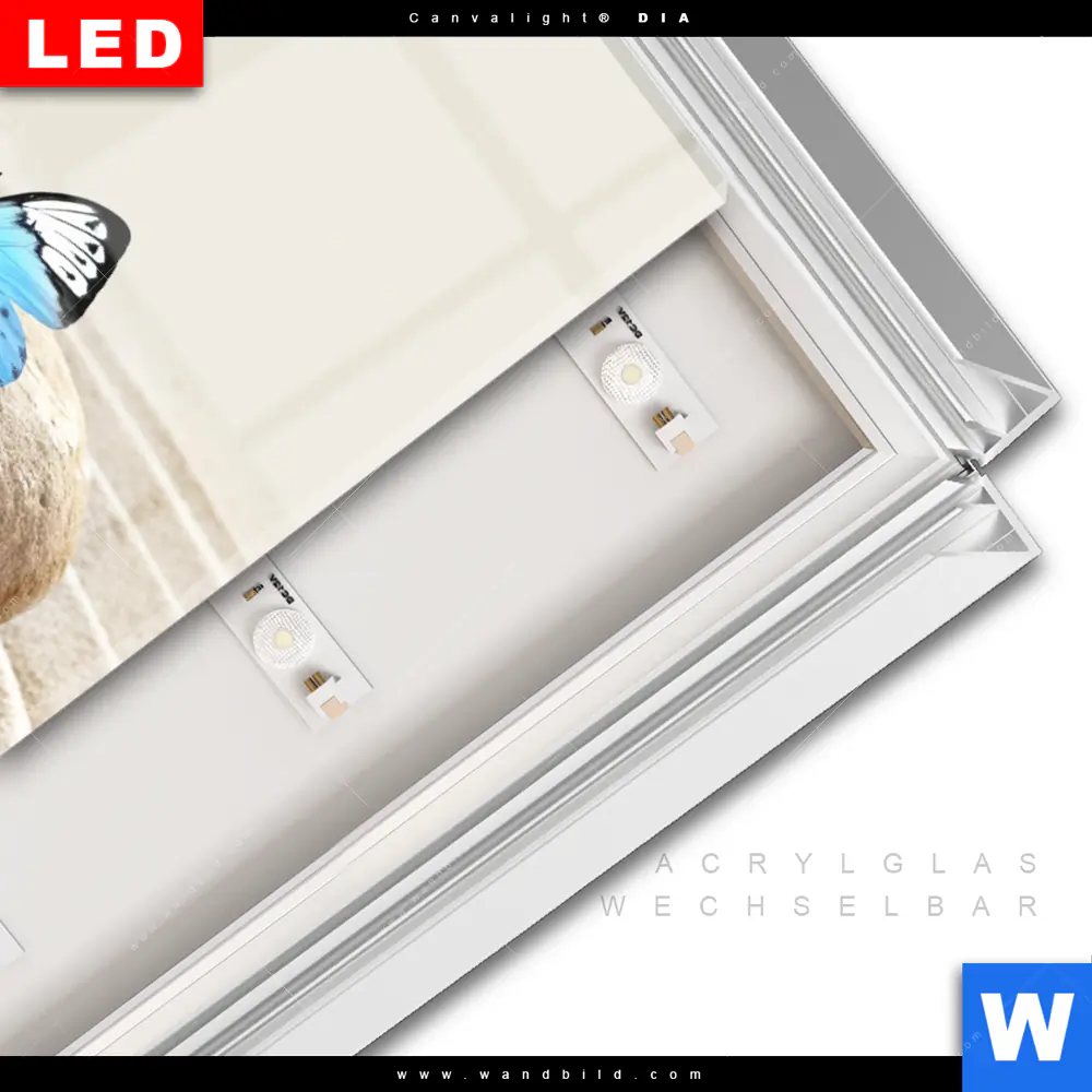 LED-Glasbild mit austauschbarem Acrylglas-Druck (Wechselbild)