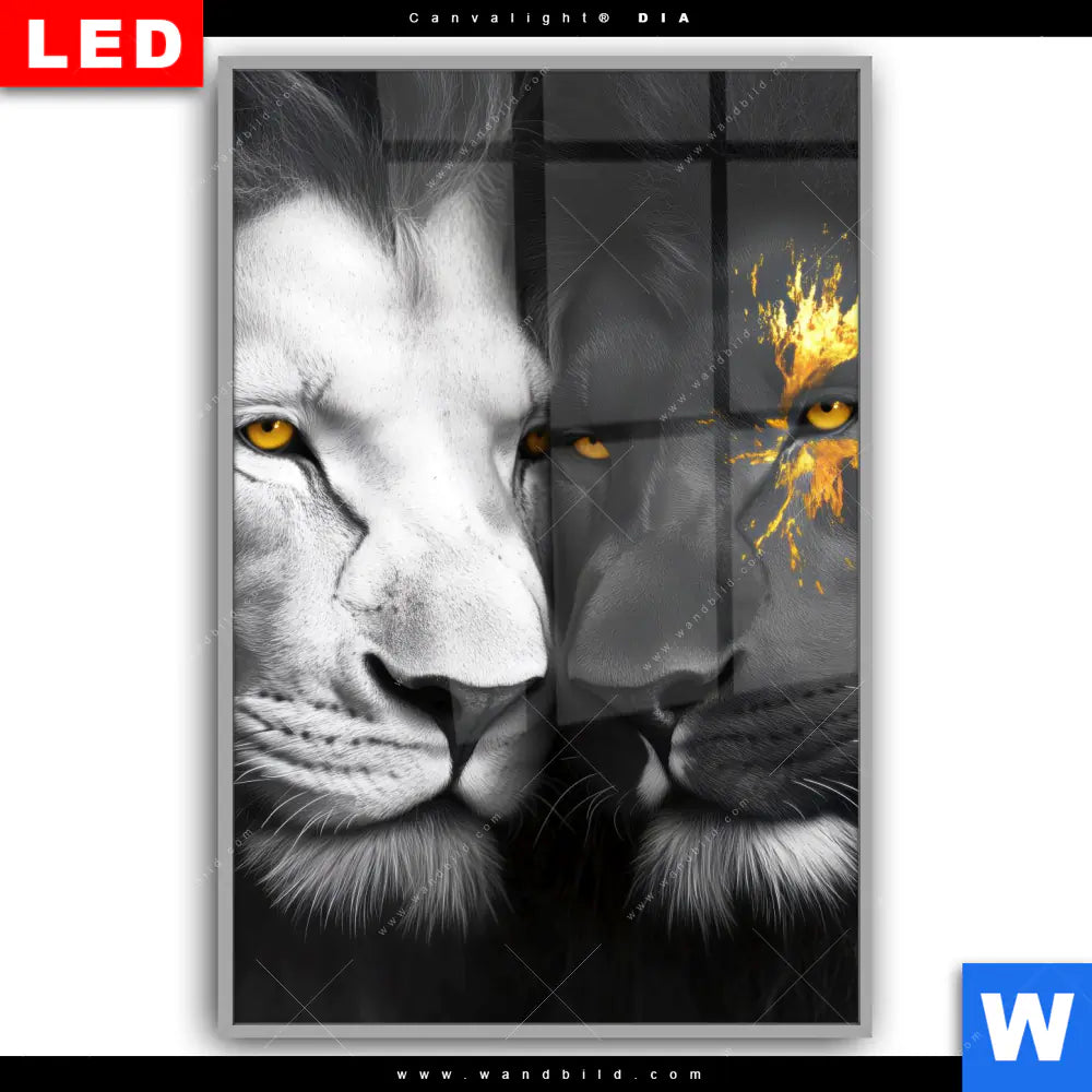 Canvalight® DIA Leuchtbild | Zwei Löwen Schwarz & Weiß | Hochformat